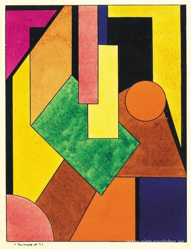 Te ofrecemos una reproducción artesanal en lienzo de la famosa obra de arte 'Composición constructivista' de Lajos Kassak, del Museo de Reproducción.