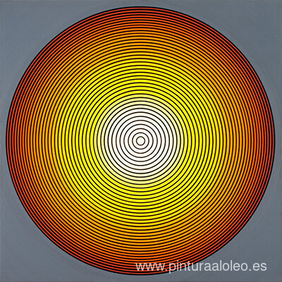 Te ofrecemos una reproducción artesanal en lienzo de la famosa obra de arte 'D 124' de Tadasky, del Museo de Reproducción.