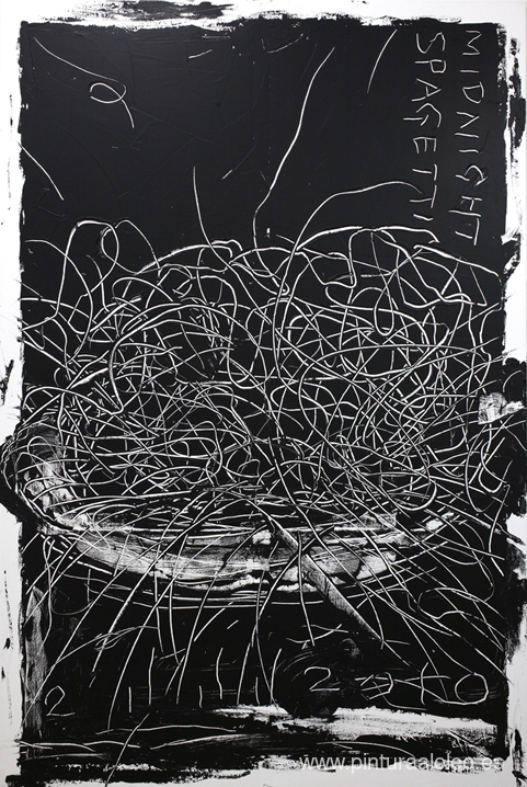 Te ofrecemos una reproducción artesanal en lienzo de la famosa obra de arte 'Espaguetis de medianoche' de Aki Kuroda, del Museo de Reproducción.