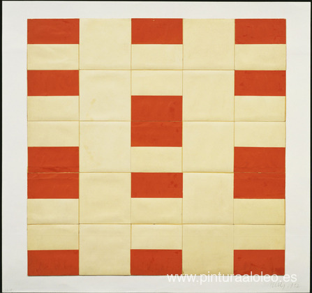 Te ofrecemos una reproducción artesanal en lienzo de la famosa obra de arte 'rojo y blanco ' de Ellsworth Kelly, del Museo de Reproducción.