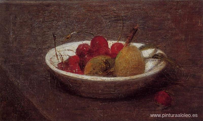 Te ofrecemos una reproducción artesanal en lienzo de la famosa obra de arte 'Bodegón de cerezas y almendras' de Henri Fantin-Latour, del Museo de Reproducción.