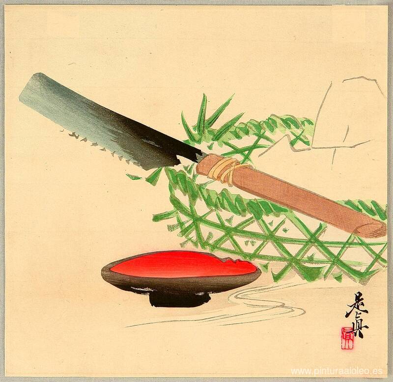 Te ofrecemos una reproducción artesanal en lienzo de la famosa obra de arte 'Bodegón' de Shibata Zeshin, del Museo de Reproducción.