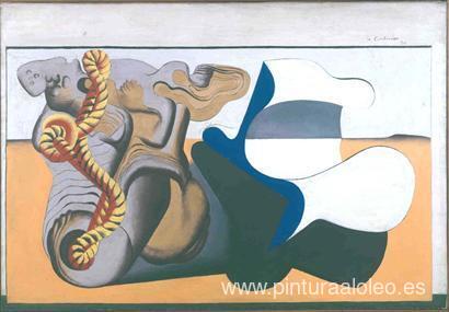 Te ofrecemos una reproducción artesanal en lienzo de la famosa obra de arte 'Naturaleza muerta con raíces y cuerda amarilla.' de Le Corbusier, del Museo de Reproducción.