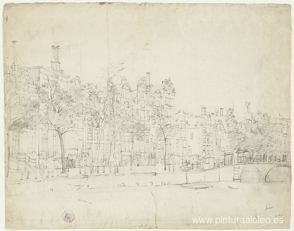 Te ofrecemos una reproducción artesanal en lienzo de la famosa obra de arte 'Ámsterdam' de Cornelis Springer, del Museo de Reproducción.