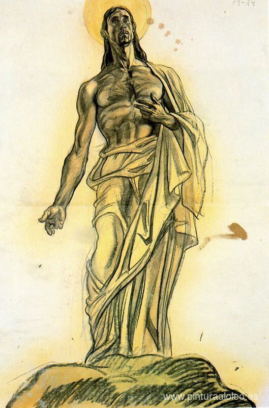 Te ofrecemos una reproducción artesanal en lienzo de la famosa obra de arte 'Boceto de decoración para la cúpula-Colegio Convento de Jesús y ' de Carlos Saenz de Tejada, del Museo de Reproducción.