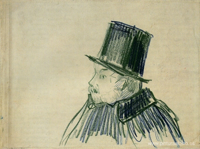 Te ofrecemos una reproducción artesanal en lienzo de la famosa obra de arte 'Cabeza de hombre con sombrero de copa' de Vincent van Gogh, del Museo de Reproducción.