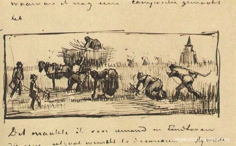 Te ofrecemos una reproducción artesanal en lienzo de la famosa obra de arte 'Cosecha de trigo' de Vincent van Gogh, del Museo de Reproducción.