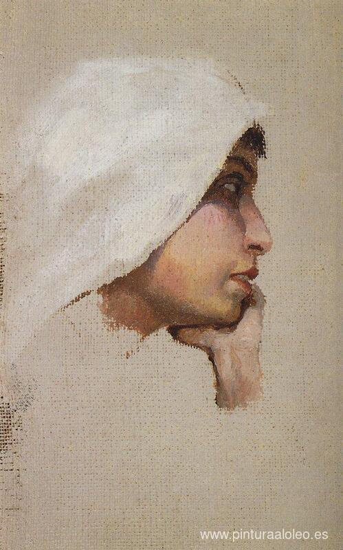 Te ofrecemos una reproducción artesanal en lienzo de la famosa obra de arte 'La cabeza de una mujer joven con un velo blanco.' de Vasily Polenov, del Museo de Reproducción.