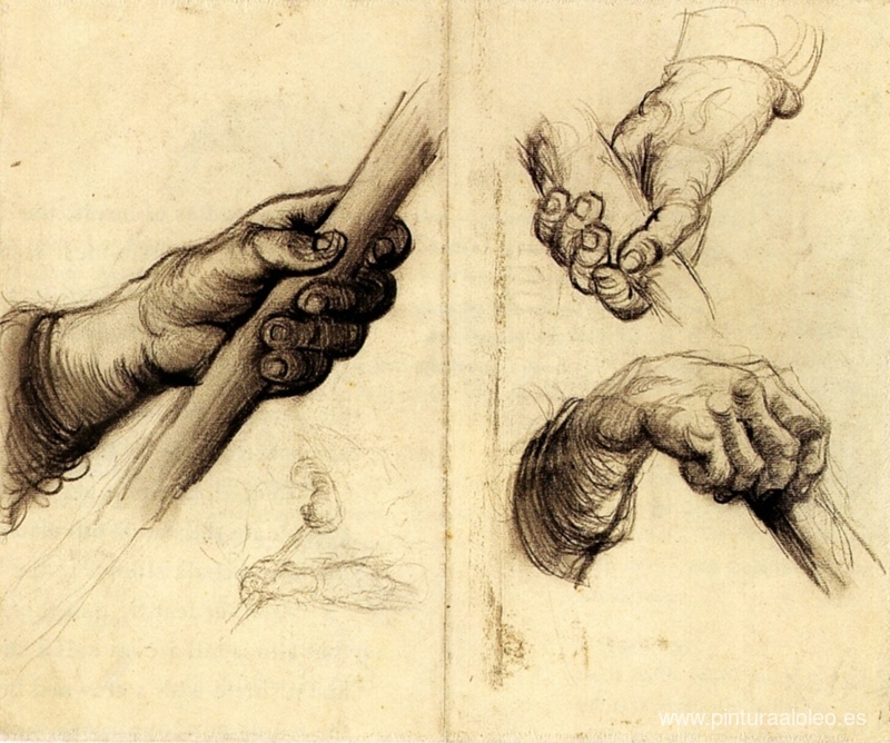 Te ofrecemos una reproducción artesanal en lienzo de la famosa obra de arte 'Manos con un palo' de Vincent van Gogh, del Museo de Reproducción.