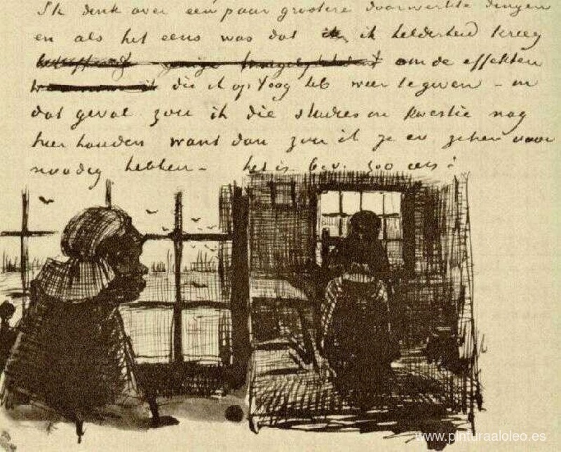 Te ofrecemos una reproducción artesanal en lienzo de la famosa obra de arte 'Mujer campesina, vista contra la ventana, cabeza y figura entera' de Vincent van Gogh, del Museo de Reproducción.