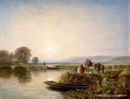 Paisaje con un hombre lavándose los pies en una fuente después d