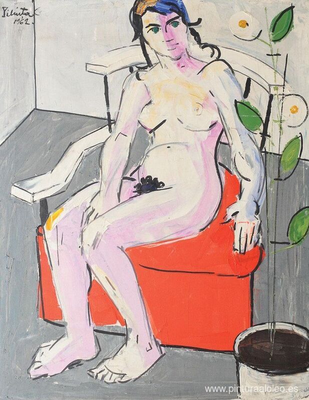Te ofrecemos una reproducción artesanal en lienzo de la famosa obra de arte 'Desnudo con Flor' de Constantin Piliuta, del Museo de Reproducción.