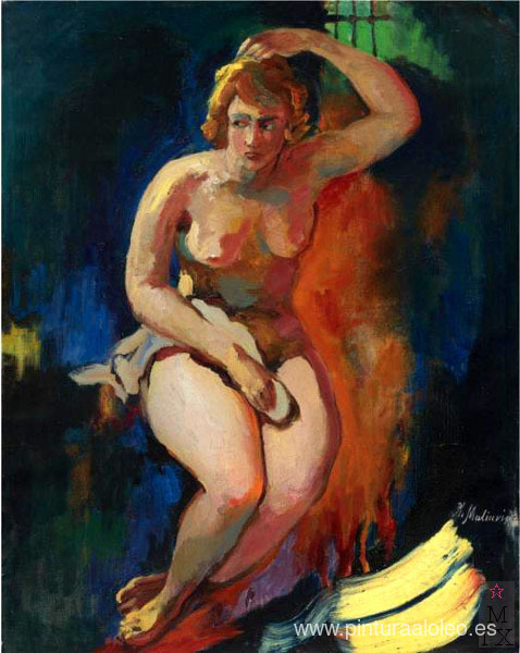 Te ofrecemos una reproducción artesanal en lienzo de la famosa obra de arte 'Desnudo' de Filipp Malyavin, del Museo de Reproducción.