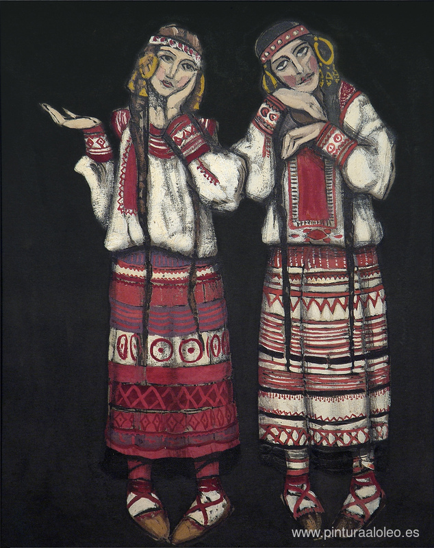 Te ofrecemos una reproducción artesanal en lienzo de la famosa obra de arte 'dos chicas' de Nicholas Roerich, del Museo de Reproducción.