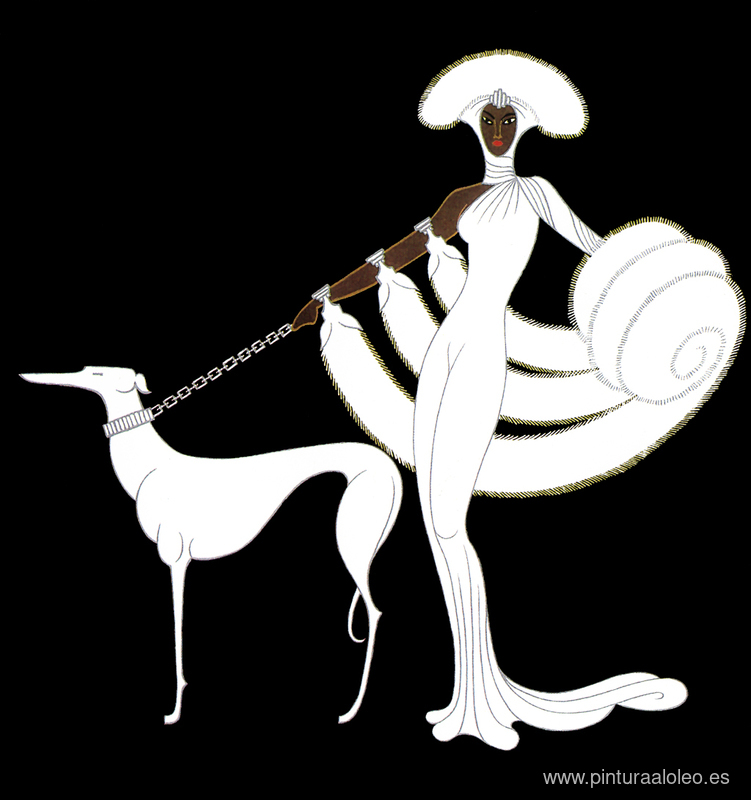 Te ofrecemos una reproducción artesanal en lienzo de la famosa obra de arte 'En el teatro, ébano y blanco.' de Erte, del Museo de Reproducción.