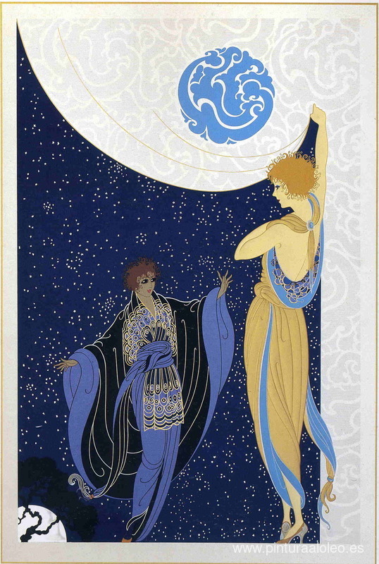 Te ofrecemos una reproducción artesanal en lienzo de la famosa obra de arte 'Nocturno' de Erte, del Museo de Reproducción.