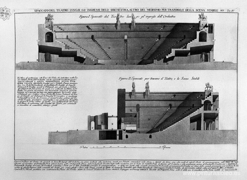 Te ofrecemos una reproducción artesanal en lienzo de la famosa obra de arte 'Teatro en corte a lo largo de gl `entradas de` Más de la misma o' de Giovanni Battista Piranesi, del Museo de Reproducción.