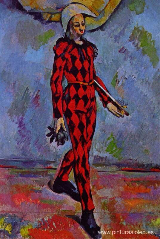 Te ofrecemos una reproducción artesanal en lienzo de la famosa obra de arte 'Arlequín ' de Paul Cezanne, del Museo de Reproducción.