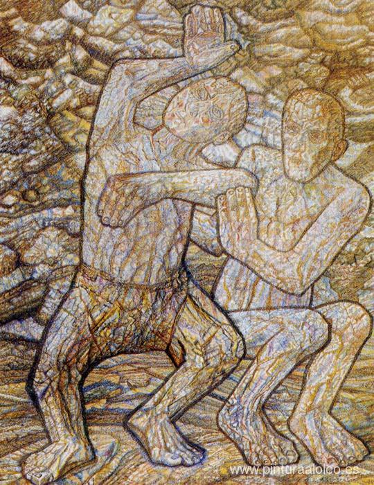 Te ofrecemos una reproducción artesanal en lienzo de la famosa obra de arte 'dos hombres' de Pavel Filonov, del Museo de Reproducción.