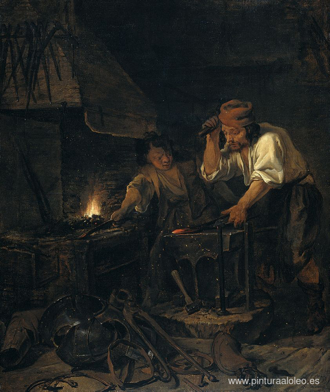 Te ofrecemos una reproducción artesanal en lienzo de la famosa obra de arte 'El armero' de Gabriel Metsu, del Museo de Reproducción.