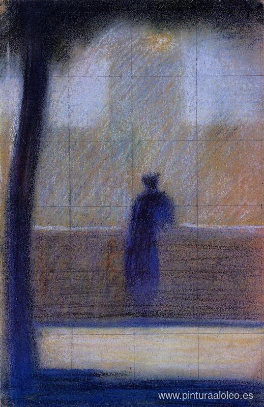 Te ofrecemos una reproducción artesanal en lienzo de la famosa obra de arte 'Hombre apoyado en un parapeto' de Georges Seurat, del Museo de Reproducción.