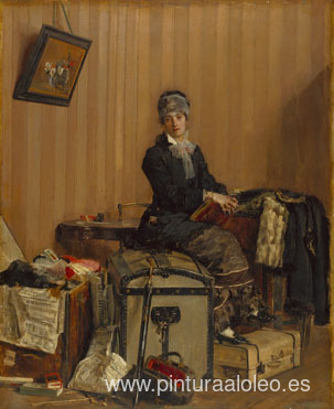 Te ofrecemos una reproducción artesanal en lienzo de la famosa obra de arte 'La Aduana' de Antonio Mancini, del Museo de Reproducción.