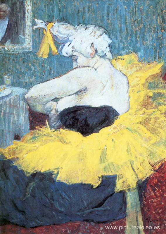 Te ofrecemos una reproducción artesanal en lienzo de la famosa obra de arte 'La payasa Cha u Kao en el Moulin Rouge' de Henri de Toulouse-Lautrec, del Museo de Reproducción.