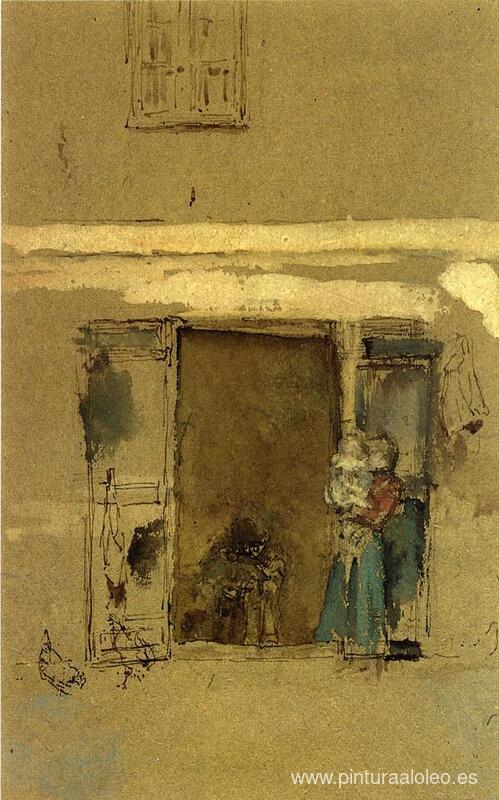 Te ofrecemos una reproducción artesanal en lienzo de la famosa obra de arte 'La puerta abierta' de James McNeill Whistler, del Museo de Reproducción.