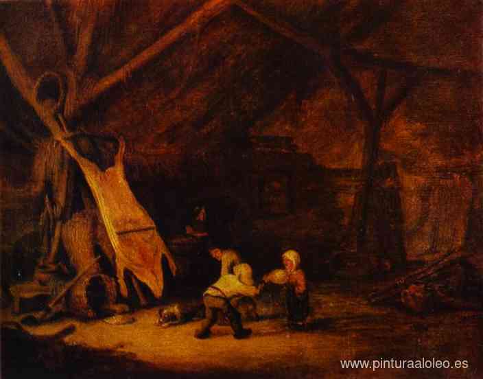 Te ofrecemos una reproducción artesanal en lienzo de la famosa obra de arte 'Niños jugando en un granero' de Adriaen van Ostade, del Museo de Reproducción.