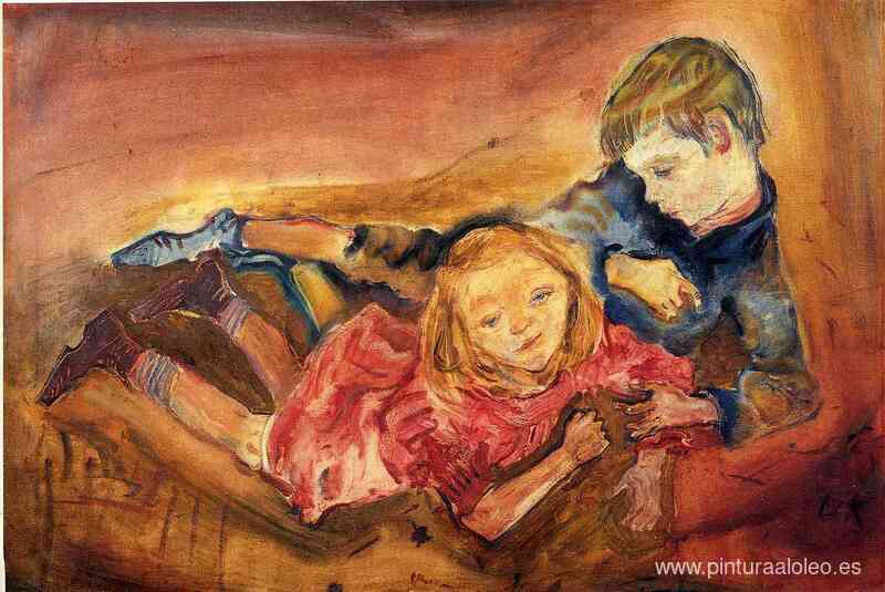 Te ofrecemos una reproducción artesanal en lienzo de la famosa obra de arte 'niños jugando' de Oskar Kokoschka, del Museo de Reproducción.