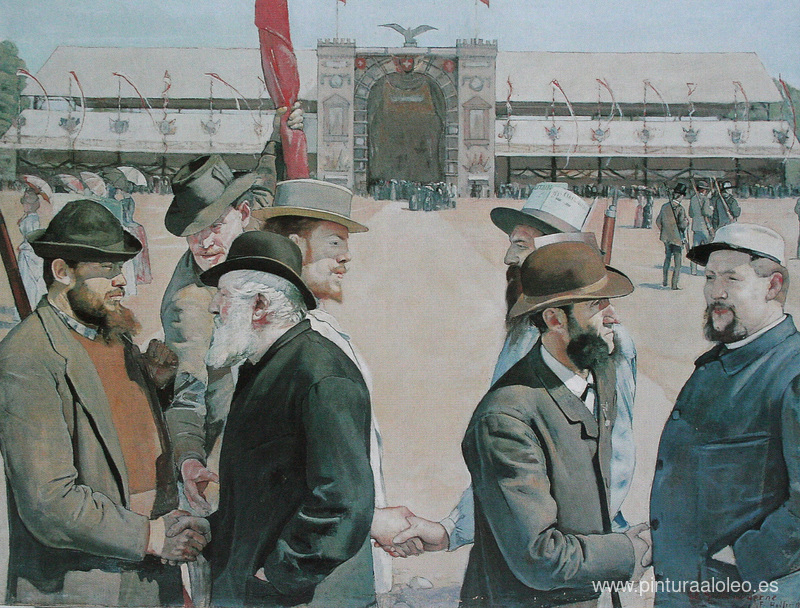 Te ofrecemos una reproducción artesanal en lienzo de la famosa obra de arte 'Rütli moderno' de Ferdinand Hodler, del Museo de Reproducción.