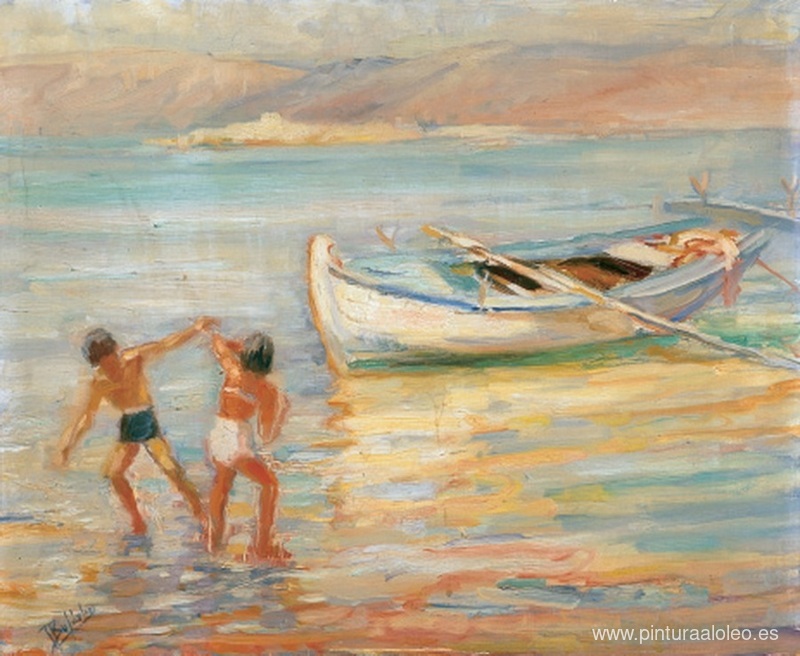 Te ofrecemos una reproducción artesanal en lienzo de la famosa obra de arte 'Verano en Hidra' de Periklis Vyzantios , del Museo de Reproducción.
