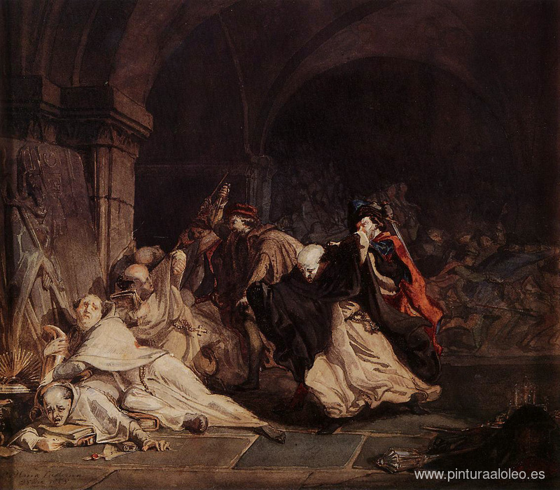 Te ofrecemos una reproducción artesanal en lienzo de la famosa obra de arte 'La masacre de los monjes de Tamond' de Sir Lawrence Alma-Tadema, del Museo de Reproducción.