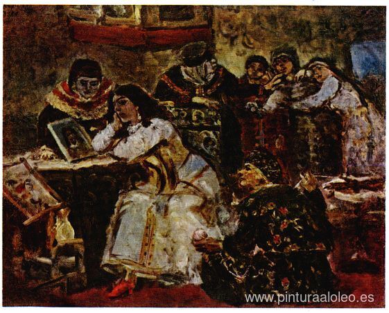 Te ofrecemos una reproducción artesanal en lienzo de la famosa obra de arte 'La princesa Xenia Godunova con el retrato de su novio, el prínci' de Vasily Surikov, del Museo de Reproducción.