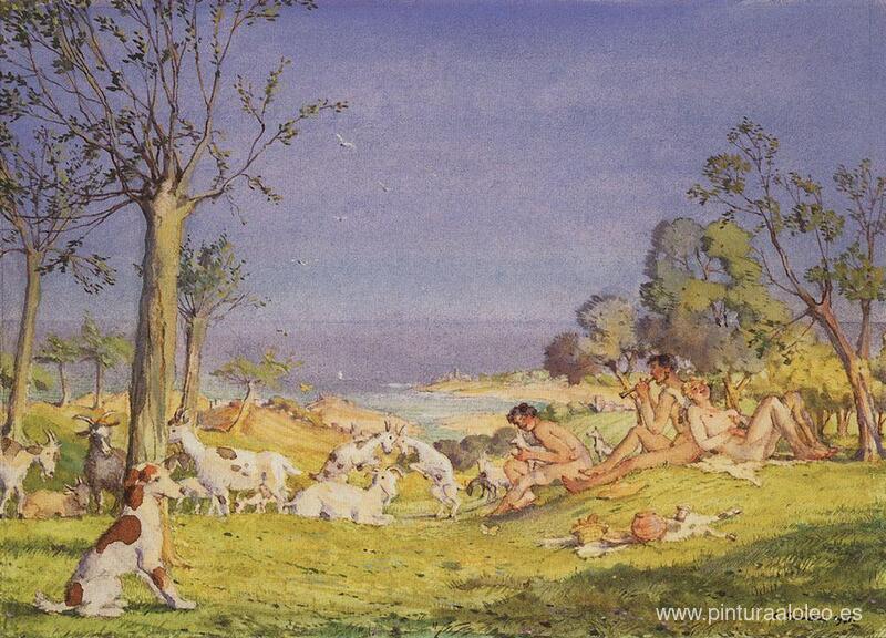 Te ofrecemos una reproducción artesanal en lienzo de la famosa obra de arte 'Ilustración de la novela Dafnis y Cloe 1' de Konstantin Somov, del Museo de Reproducción.