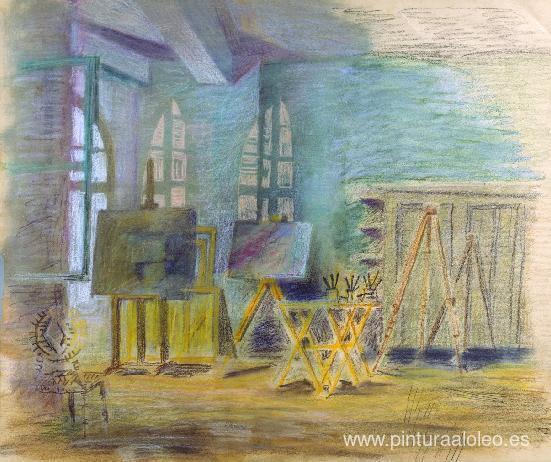 Te ofrecemos una reproducción artesanal en lienzo de la famosa obra de arte 'El estudio en Hidra' de Nikos Hadjikyriakos-Ghikas, del Museo de Reproducción.