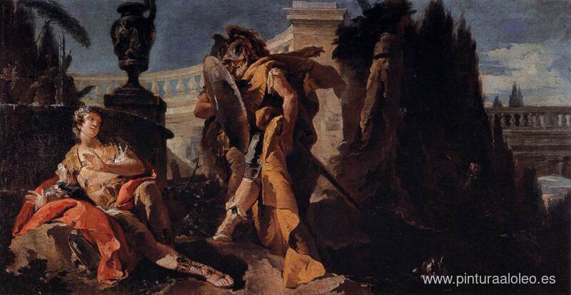 Te ofrecemos una reproducción artesanal en lienzo de la famosa obra de arte 'Rinaldo observado por Carlo y Ubaldo' de Giovanni Battista Tiepolo, del Museo de Reproducción.
