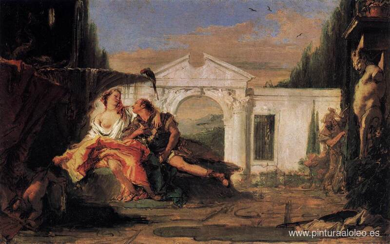 Te ofrecemos una reproducción artesanal en lienzo de la famosa obra de arte 'Rinaldo y Armida' de Giovanni Battista Tiepolo, del Museo de Reproducción.