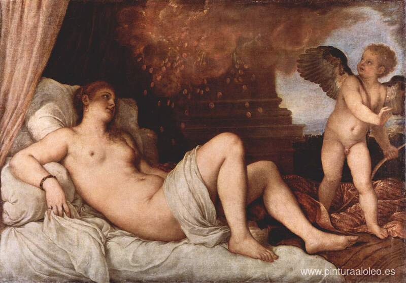 Te ofrecemos una reproducción artesanal en lienzo de la famosa obra de arte 'Dánae' de Titian, del Museo de Reproducción.