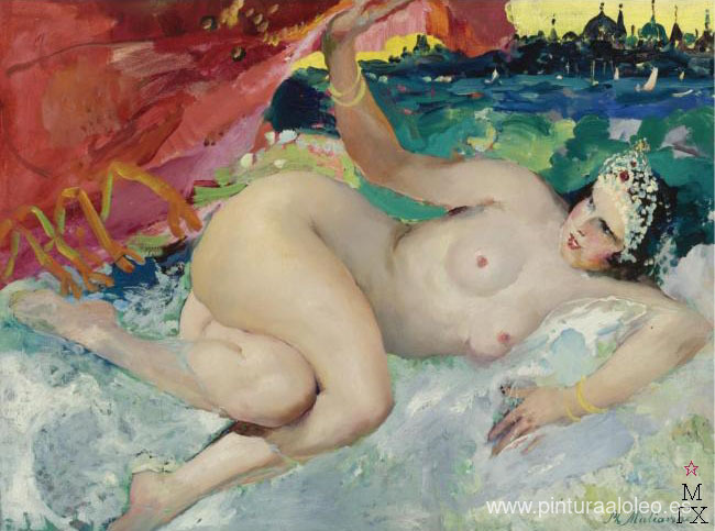 Te ofrecemos una reproducción artesanal en lienzo de la famosa obra de arte 'Dánae' de Filipp Malyavin, del Museo de Reproducción.