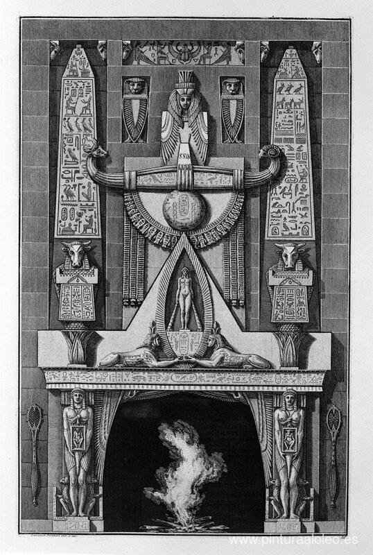 Te ofrecemos una reproducción artesanal en lienzo de la famosa obra de arte 'Chimenea de estilo egipcio, en el suelo entre dos obeliscos y di' de Giovanni Battista Piranesi, del Museo de Reproducción.