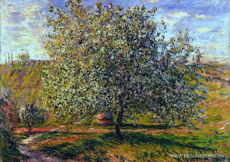 Te ofrecemos una reproducción artesanal en lienzo de la famosa obra de arte 'Árbol en flor cerca de Vetheuil' de Claude Monet, del Museo de Reproducción.