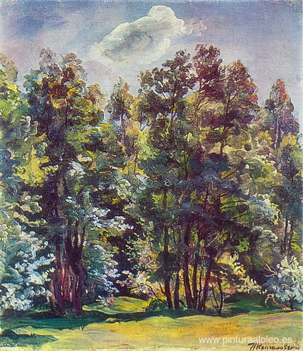 Te ofrecemos una reproducción artesanal en lienzo de la famosa obra de arte 'Aliso contra el sol' de Pyotr Konchalovsky, del Museo de Reproducción.