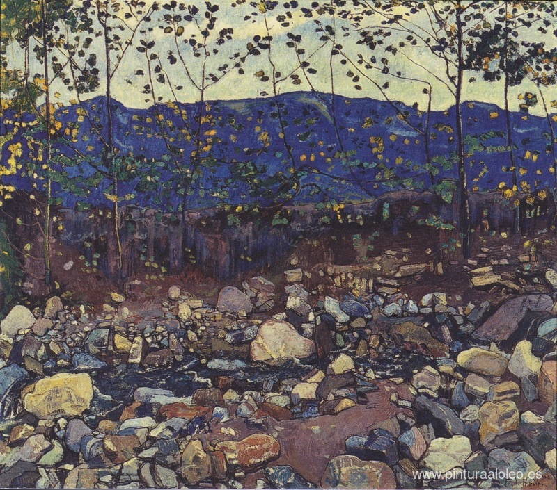 Te ofrecemos una reproducción artesanal en lienzo de la famosa obra de arte 'Arroyo del bosque en Leissingen' de Ferdinand Hodler, del Museo de Reproducción.