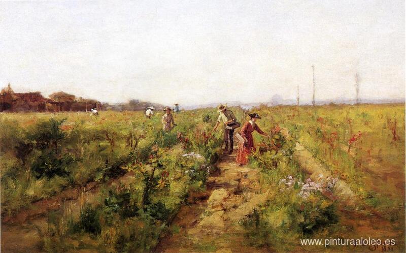 Te ofrecemos una reproducción artesanal en lienzo de la famosa obra de arte 'En el campo de bayas' de T. C. Steele, del Museo de Reproducción.