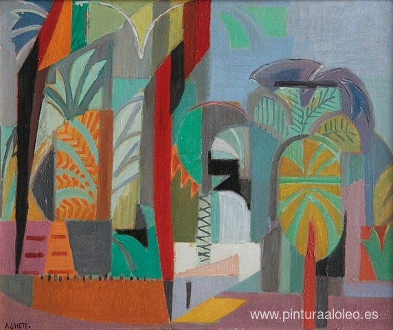 Te ofrecemos una reproducción artesanal en lienzo de la famosa obra de arte 'Les Palmiers de Tebas' de André Lhote, del Museo de Reproducción.