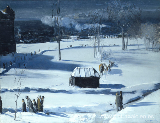 Te ofrecemos una reproducción artesanal en lienzo de la famosa obra de arte 'Nieve Azul, La Batería' de George Bellows, del Museo de Reproducción.