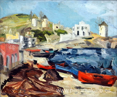 Te ofrecemos una reproducción artesanal en lienzo de la famosa obra de arte 'Paisaje de la isla de Paros' de Ion Tuculescu, del Museo de Reproducción.