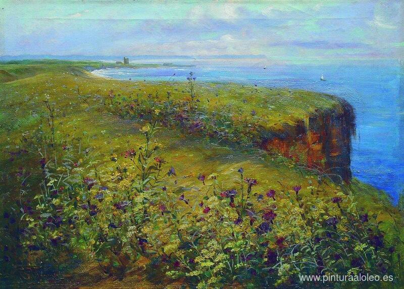 Te ofrecemos una reproducción artesanal en lienzo de la famosa obra de arte 'Paisaje (Mar y Flores)' de Konstantin Makovsky, del Museo de Reproducción.