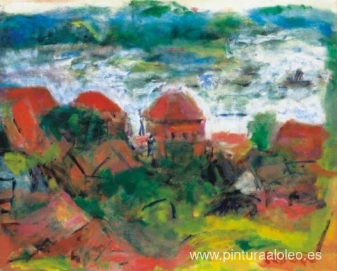 Te ofrecemos una reproducción artesanal en lienzo de la famosa obra de arte 'Szentendre con el Danubio' de Bela Czobel, del Museo de Reproducción.